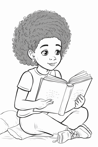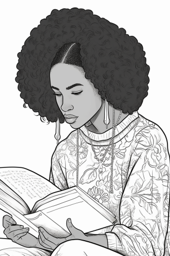 coloring book, black and white, no shading, african american woman reading a book --ar 2:3 --v 5.0
