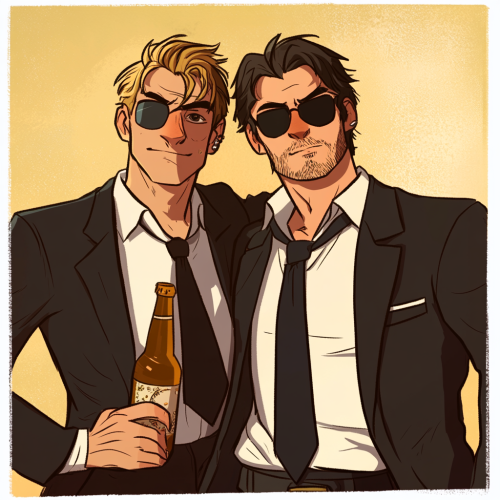 Ttwo Aries men. One with piercingly blue eyes and tan skin and jet black curly hair. The other, who is similar looking but with different coloring with sandy blonde curls and brown eyes --s 250