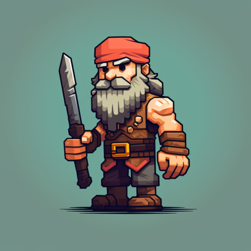 an adventurer pixel art Single Game Texture. In-Game asset. 2d. Pixelart. White background. Blank background. Low detail. High contrast. --seed 5607