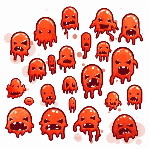 many explosion 2D pictogram, icon, indie game, white background --no plane, building, character, animals, fire, flames, water, planet earth, water, tree, trees, electronics, computer, phone, camera, woman, people, train, rail
