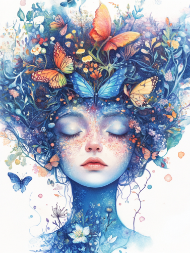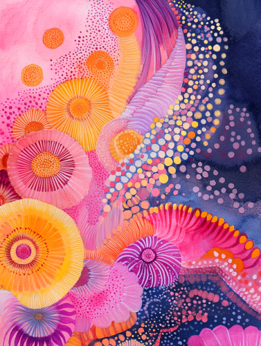 infinitely psychedelic, watercolour painting, bold contrasting colours, girly femine style, be incredibly bold and make something incredible that is influenced by contemporary natural art and psychedelia, optical illusion, fractals and natural scenes --chaos 10 --ar 3:4 --iw 1.2 --v 6.1