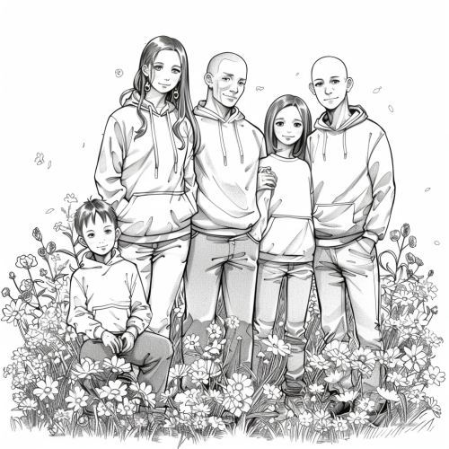 A black and white illustration of a cute doberman puppy surrounded by thin black lines. The puppy is in a feild of flowers . This image is designed as a coloring page for kids. --ar 4:7