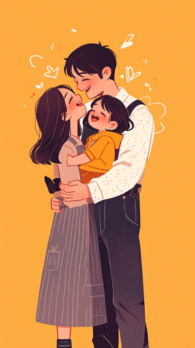 A family full of love, mom and dad and child, simple --niji 6 --ar 9:16
