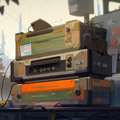 a cassette playing boombox held by a lonely anomorphic human-like robot searching through a post apocalyptic jet set radio future blade runner metal gear solid world. Sony CyberShot. 1080p 4k --niji 5
