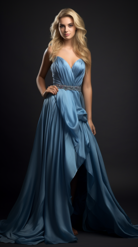 beautiful thin black transgender woman, 25 years old, wearing short dress, blue, satin, beautiful makeup, full body shot, --ar 1:1
