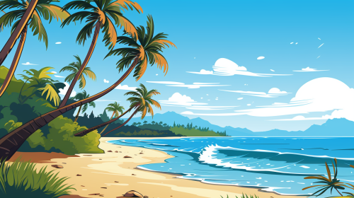 A long grassy path that cuts through the row of trees to come out on the coastline, 8k --s 250 --niji 5