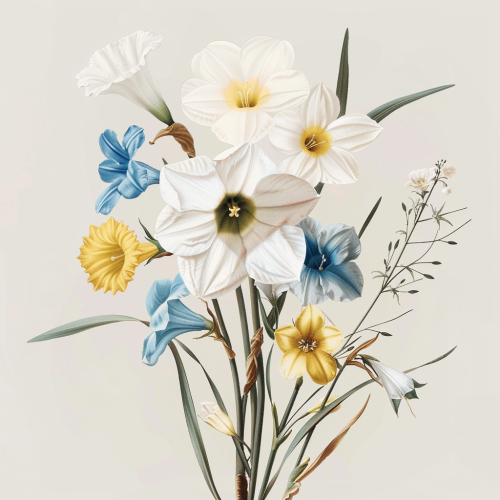 bouquet of daffodils and morning glory simple and minimalistic in realistic style vertical