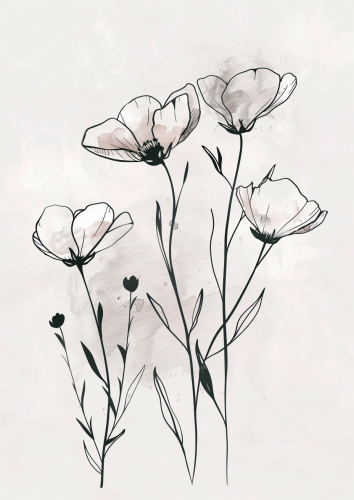 A minimalist wildflower illustration page for a spring junk journal, focusing on line art and subtle watercolor washes on a white background. Created Using: Line art with watercolor, minimalist floral designs, soft pastel hues, white paper background, simple elegance, digital watercolor techniques, X prompt, hd quality, natural look --v 6.0 --ar 5:7