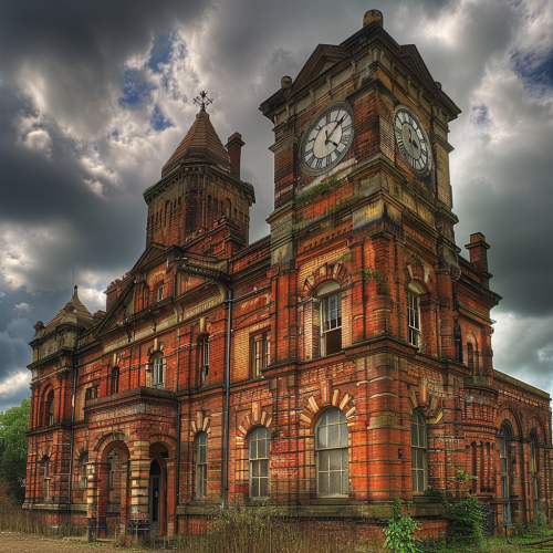 brick and steel industial building exterior realistic