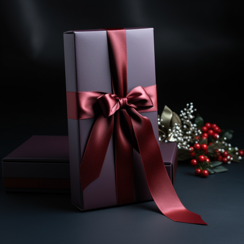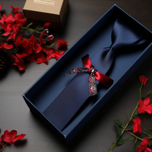 dark blue color gift box tie with dark red ribbon, luxury, christmas
