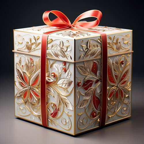 Beautifully designed gift boxes There is a golden bow tied to the gift box.