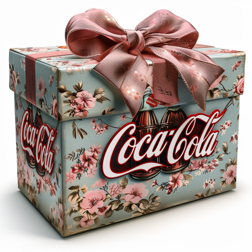 Gift box with a bow, inside there are children's toys from "Coca-Cola", ultra-realistic, super quality, real photo --v 6.0 --s 750