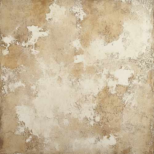 Focus on a textured, rustic wall with a warm beige color palette. The wall has a worn, vintage look with subtle variations in tone, creating a distressed effect. The surface features soft, faded patterns and slight discolorations, giving it a naturally aged appearance. The overall ambiance is warm and inviting, with the beige tones creating a cozy yet slightly weathered backdrop.