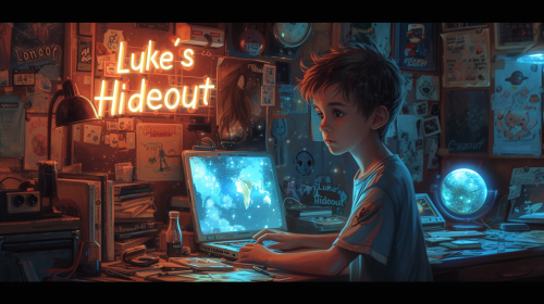 8 year old boy, with light brown medium hair, brown round eyes, white skin, gentle, beautiful smile, good heart, playing with minecraft and nature, drawing --style raw --s 250
