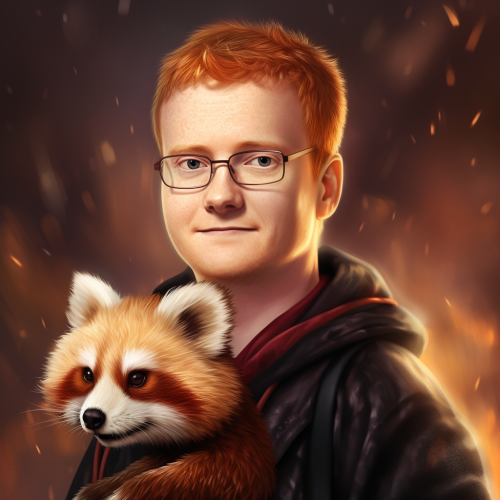 a cute red panda magical wizard, character design, concept art, animation, realistic, pixar, --ar 2:3