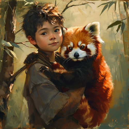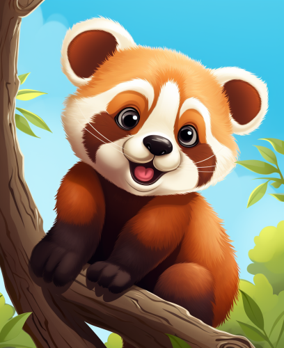kids illustration, Red panda, cartoon style, thick lines, low detail, vivid color --ar 9:11