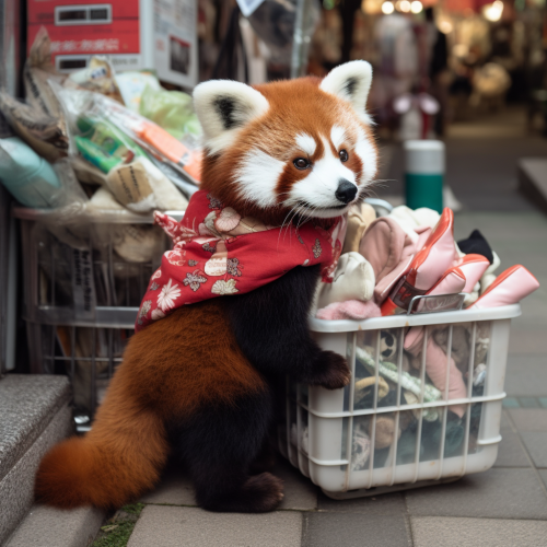 A white, fluffy red panda is shopping on the streets of Shibuya --v 5.0