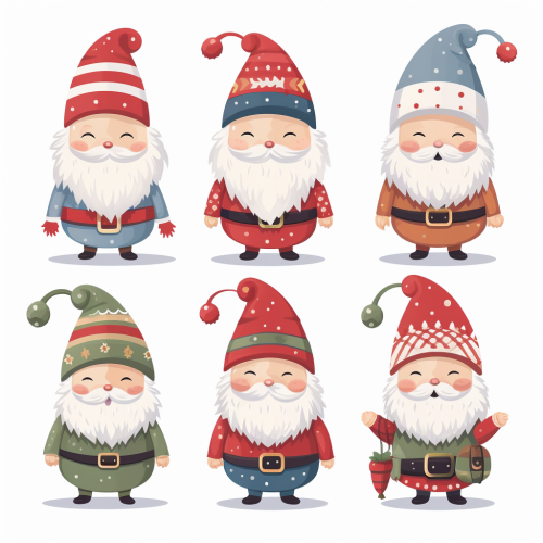 Christmas Gnomes vector set. Christmas quotes. Cute elf isolated on white. Cartoon characters. Xmas design for holidays decoration, greeting cards, gift tags, t-shirt print.