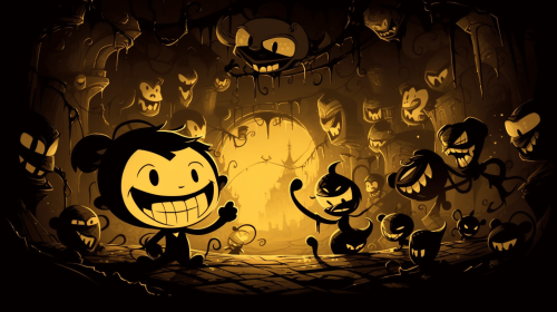 Bendy and the Ink Machine background for youtube but so funny and friendly --ar 16:9 --v 5.0