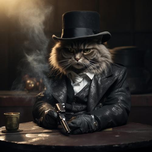 photo 4k, d’un chat gangster fumant un cigare avec un revolver dans un bain, porte des bijoux, mafieux