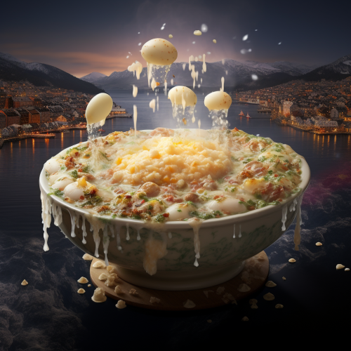 Can you make a picture of the dish coming from Bergen colled "Raspeball" in Norwegian?