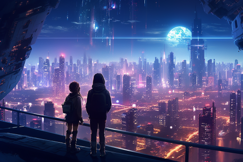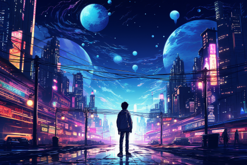 Boy exploring a city of dreams and stars, towering city, extremely detailed --ar 3:2