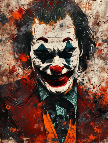 the Joker in the style of dark aquamarine and red, detailed comic book art, burned/charred, iconic album covers, trompe-l'œil illusionistic detail, poster art --ar 3:4 --v 6.0
