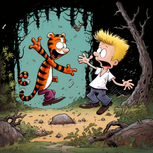 A dead letter with cross eyes and tounge hanging out, being thrown by an angry developer down a cliff,simple funny comic book style,calvin hobbes style --s 250