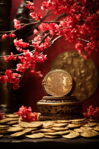 An abstract t-shirt design featuring Delta Sigma Theta's symbols such as the elephant and the pyramid. The elephant should be adorned with a detailed, artistic headpiece, and the pyramid should have intricate details inside it. Use red and white with a gold outline for highlighting the symbols. Incorporate the sorority's motto subtly at the bottom of the design. --q 0.5