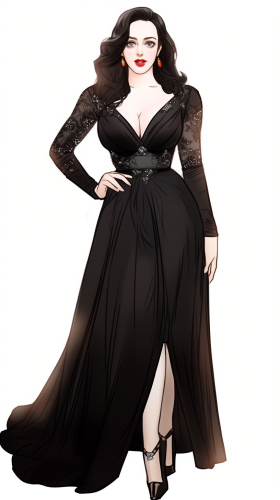 gorgeous bold stunning Kat Dennings illustrated in Manhwa style in a low cut ball gown. --ar 9:16 --style raw --s 2