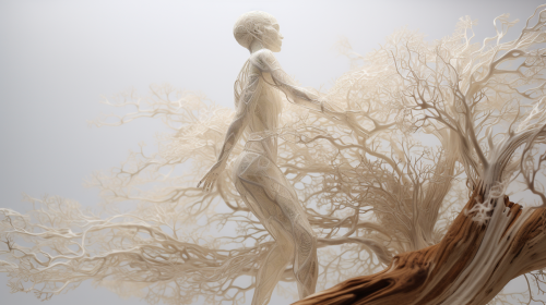 Imagine an image where the essence of data and growth is symbolized by a flourishing tree with roots shaped like digital circuits, representing the foundation of data. The branches are laden with fruits and leaves, each leaf or fruit symbolizing different aspects of your business. In the background, there’s a subtle silhouette of a fit, healthy figure, blending into the tree, symbolizing the lean and strong growth of both your body and business. This fusion creates a symbolic representation of my goals for the year. --ar 9:16 --style raw --v 6.0