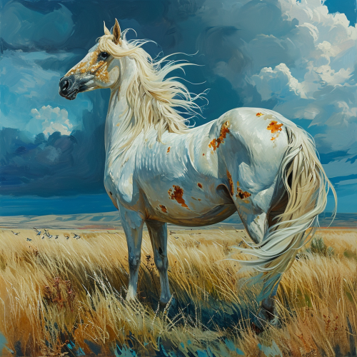 A striking black and white hybrid creature with the body of a sleek, powerful wolf covered in dark fur, combined with large, expansive eagle wings. The animal has piercing, sharp eagle eyes and a strong, hooked beak. The wings, emerging from its back, are covered in a gradient of black to white feathers. Its muscular wolf legs and agile body allow it to prowl on land while its large wings enable it to soar majestically through the sky. The contrast between the dark fur and the monochromatic wings gives the creature an imposing yet elegant presence --ar 2:3
