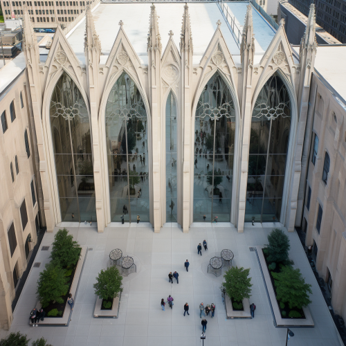 bird eye view of a grand terminal station in the style of grand palais, beaux arts style, --ar 16:9 --s 750 -