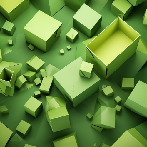 Combination of light green and green gently crumpled background, viewed from a bird's-eye perspective, featuring 4 shallow boxes reminiscent of frames containing elements for a web shop, ultra hd realistic picture
