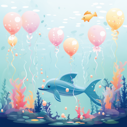 magical dreamy underwater landscape simple minimalistic illustration in bright pastel colors kid birthday party