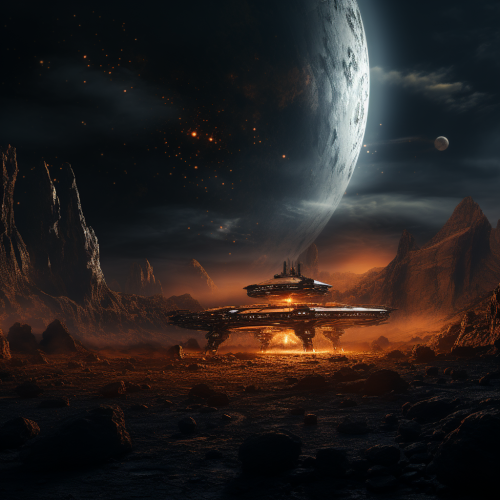 v**Prompt**: A hyper-realistic image of an astronaut standing inside a futuristic spacecraft, gazing out through the large panoramic windows at the breathtaking, vast universe beyond. The scene captures the intricate details of the spacecraft’s interior, with control panels softly glowing and the reflection of distant stars dancing on the metallic surfaces. The astronaut, fully suited, stands in awe, illuminated by the soft light of the stars and nebulae outside. The backdrop showcases a magnificent view of space, with swirling galaxies, sparkling constellations, and vibrant colors from distant nebulae stretching across the horizon. The cosmic wonders contrast against the dark void of space, creating a sense of wonder and infinity. The lighting is dramatic, highlighting both the high-tech surroundings of the spaceship and the vast, beautiful universe outside. Shot with a cinematic wide-angle lens to capture both the astronaut and the full grandeur of the universe. --ar 16:9 --v 5.2 --s 750