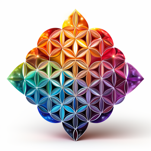 create a bitcoin logo made of Flower of Life in rainbow colors, white background --stylize 270 --v 5.2