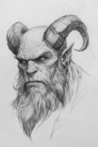 ((A greyscale fantasy concept art)) facial-portrait of a TRADITIONAL GERMAN KRAMPUS, concept art design sheet, pencil drawing, ((black and white image)), simple design, white background, high contrast, dark fantasy, low detail, book illustration, shaded flat illustration, simple shading, hearthstone concept art style, inspired by Joe Madureira art --no light, surface light, bad quality, signature, text, logo, NSFW --ar 2:3 --v 6.1