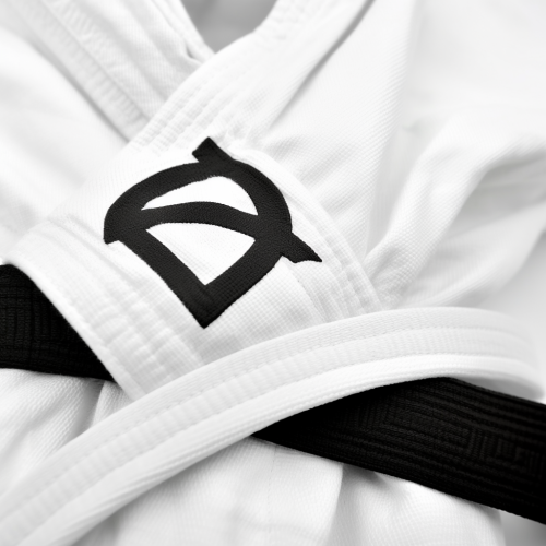Logo depicting the black belt of judo, on a white background, close-up --style raw