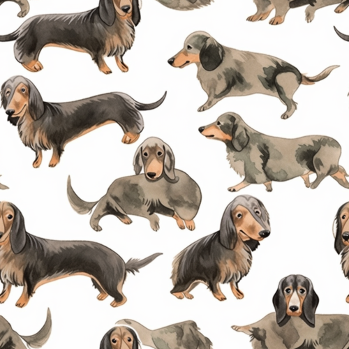 sketch and crisp pencil art style, dachshund face isolated evenly spaced, background colours of beige, forest green and deep purple --tile