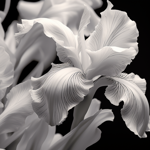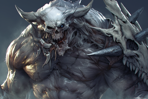 Close-up portrait of an orc in black and white, inspired by the iconic orcs of Warcraft. The focus is on high detail and texture, with rough, intricate skin features. The orc has rings on its tusks and several scars across its face, adding character and history. The orc’s skin features more white tones than black, giving a brighter overall appearance. The lighting is soft and even, minimizing deep shadows, especially around the eyes, which should remain visible and not too dark. The background is black to contrast the orc's lighter tones, while the overall feel remains balanced, focusing on clarity and detailed facial features. --ar 1:3