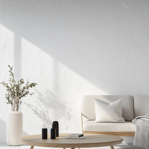 A very close and detailed view of a plain white wall, featuring a centered rectangular area where the wallpaper design will be showcased. The camera is zoomed in to capture the texture and pattern of the wallpaper vividly. The white background provides a stark contrast, making every detail of the wallpaper stand out clearly. The image is well-lit, with soft, diffused lighting to avoid any shadows or glare, allowing the customer to see the fine details and quality of the wallpaper up close.
