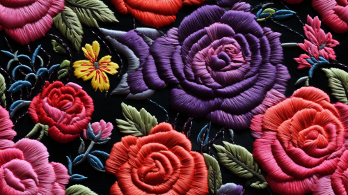 Embroidered roses on black fabric