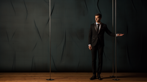 Man elegantly dressed standing up on a basic limbo background --ar 16:9
