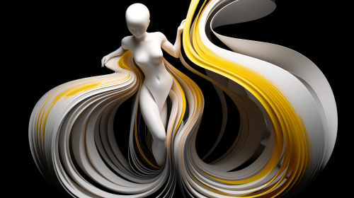 a black and white abstract artwork of an full body OWN on a black background, in the style of WHITE AND YELLOW, 3D, colorful layered forms, wallpaper, intricate designs, colorful curves, in the style of paul barson, --ar 16:9 --v 5.2