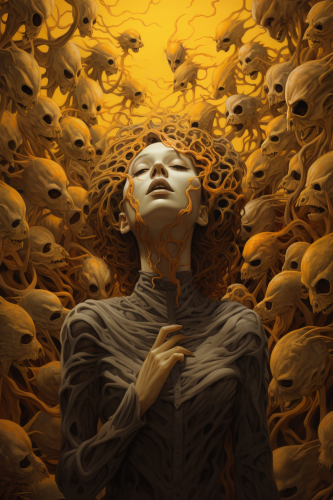 man wearing a crown that controls the dead ::10 25 mm, photorealistic, By Katsuya terada, Kilian Eng, Moebius, Noah bradley, junji ito, laurie greasley , studio ghibli, movie poster, dolby vision, madhouse studio, mappa, toei, ::6 cronencore, fleshcore, miyazaki, junji ito ::9 , epic, 8k, hyperrealistic, hyper detailed, volumetric lighting, cinematic, 16k, octane render, ray tracing, epic, Vibrant colors, Atmosphere, Spectacular details, Dramatic lighting, Epic composition, highly detailed sculpture, anatomical, ommatidia, post-processing, intricate detailed ::1 dynamic angle, epic composition ::9 --ar 2:3 --v 5.2