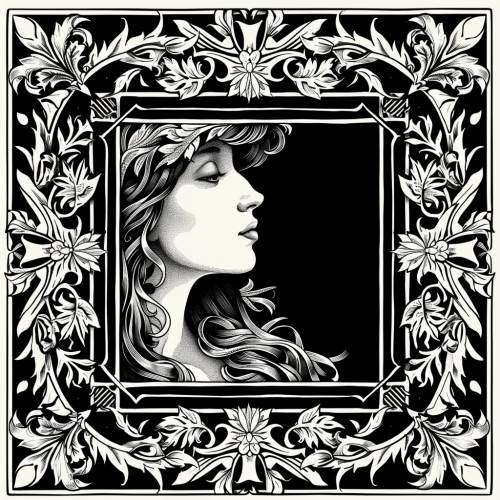 square black metal music inspired art nouveau border that would go around an album cover. Instead of the album cover leave negative space. black and white --v 6.0