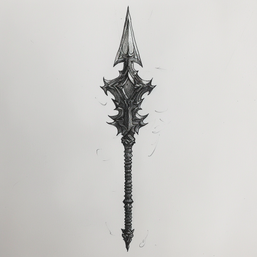 a Fantasy arrow, Evil in origin, black metal, weapon concept, spotlight, masterpiece, handdrawn