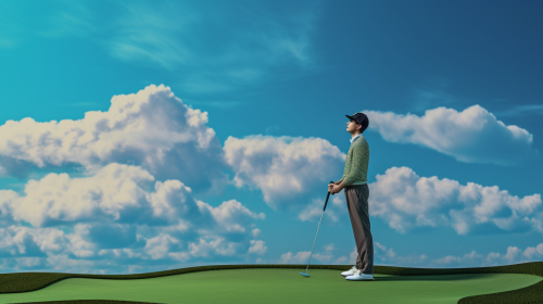 Very high-end exclusive Golf course. Cubist. Well manicured course. Extreme low angle shot. Black and white with vibrant color splash. Ocean course. Blue-green water. Golden hour. Stylish. Important. Mysterious. Black and white. Shot with a Pentax. K-3 III Monochrome. --ar 16:9 --q 0.5 --s 750