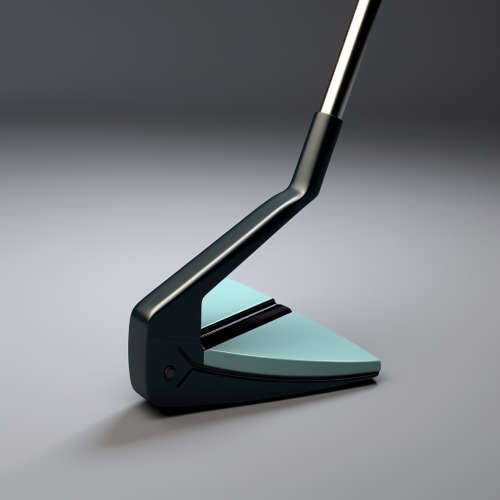 a new innovative golf putter designed to be leightweight and optimized for professionals and personal use. The putter should include mid century concepts and unique geomtries with sharp lines. Colors blue, metal grey, and black.